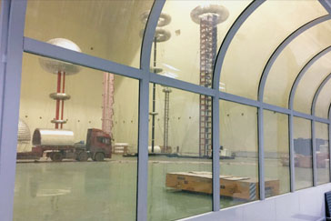 高壓局放試驗大廳控制室可采用我單位設計的曲面觀察窗,樣式美觀,觀察范圍無任何死角
